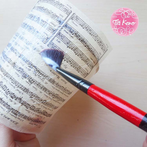 Y volvemos a dar otra capa de cola para decoupage por encima de toda la servilleta.
