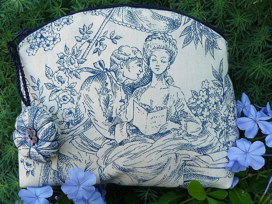 El neceser de Yared nos atrapa con su estilo clásico tan versallesco. Es un bello ejemplo de la costura toile de jouy, siempre de moda rabiosa en el foro. La artista ha escogido un precioso motivo galante, muy bien centrado en el montaje.