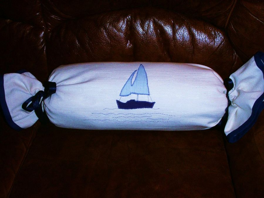 Y finalmente, una pieza muy agradecida para los largos trayecto en coche: el cojín reposacuellos, servicial aliado de las mejores siestas. El de Atardecer, en forma de caramelo, lleva cosido un barquito velero, como anticipo de las horas felices que nos aguardan en el lugar de destino.