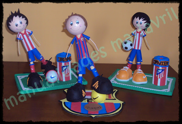 Hola!!! buenos días hoy os traigo mis ultimas fofuchas.. esta vez son sobre fútbol las e realizado en diferentes posturas una apoyada sobre el balón, otra con el balón en las manos y otra dando una patada al balón, que os parecen!!!!!! Os recuerdo que si estáis interesados en alguna fofucha o cualquier otra manualidad podéis poneros en contacto conmigo en manualidadesmariavril@hotmail.es, también ...