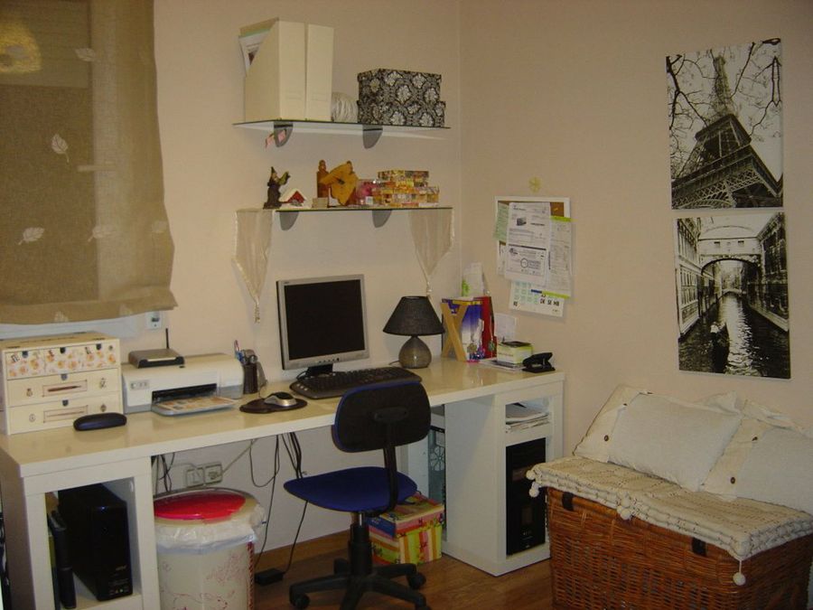 Y completamos las sugerencias mostrando el sitio de trabajo de Trana, que ha cosechado numerosas alabanzas. Ella misma pintó las cajas que guarda bajo la mesa de costura. “De momento la tengo en mi cocina-comedor, que es donde hago mis manualidades, pero pienso habilitar una habitación, mientras tanto me voy arreglando con esto”.