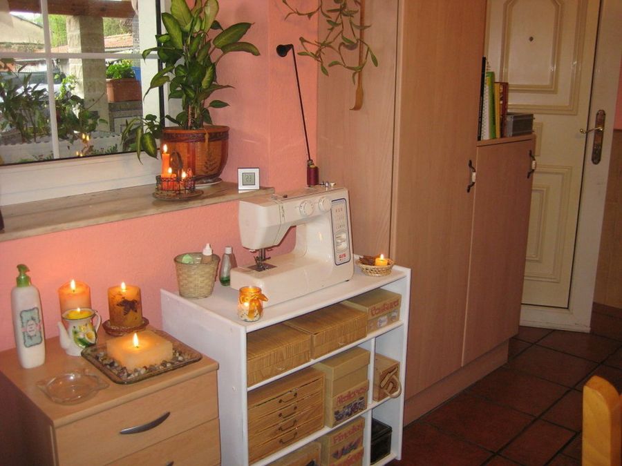 FlopySana nos enseña con muy buen humor su “caos manualístico” a raíz de una reciente mudanza. Provisionalmente, planea montar su mini taller en el lavadero. De momento nuestra lectora no tiene mucho material, “pues hace muy poco que he empezado con las manualidades, pero lo poco que tengo está hecho un lío tras la mudanza”. Su idea es parecida a la que ya ha puesto en práctica Titona, que ha emplazado su rincón de trabajo en un baño de su casa. “Le he quitado casi todo y después metí una estantería. Fue trabajoso convencer a la familia, pero al final lo consiguió un refugio para sus pinturas, máquinas, peluches y mil cosas.