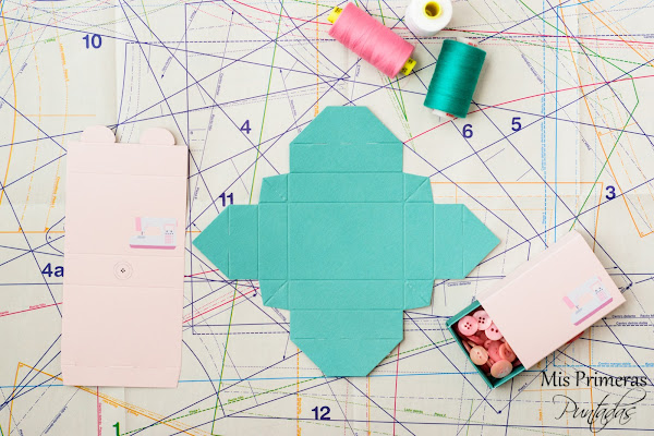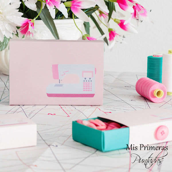 Yo decidí personalizar unas cajas básicas de cerillas eligiendo el color de cada pieza que formaba la caja y colocando unos motivos de costura de mi elección (en mi caso la máquina de coser y el botón).