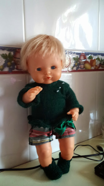 hola ....hoy toca vestir a los nenucos... y que os parece este conjuntito ...pantalón de cuadros y jersey verde...unos patuquitos que con el frío que hace no lo podemos dejar andar descalzo ... os gusto...!!!!