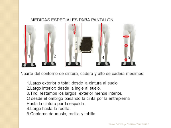 Si lo que queremos es un pantalón pitillo, medimos el contorno del tobillo, de rodilla y de muslo; estas medidas las dividimos entre dos y son las que se ponen en las perneras para que ajusten.