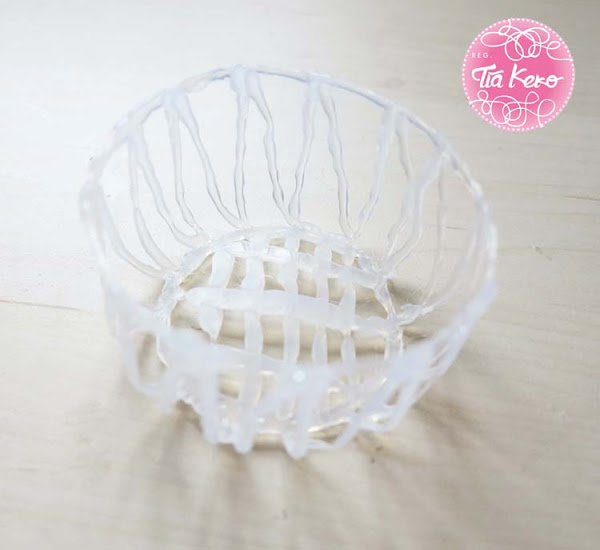 Una vez la pistola de silicona esta caliente vamos a comenzar a hacer nuestro cuenco, poco a poco vamos haciendo las aristas de la base que compongan nuestro cuenco, igual que en la imagen inferior.