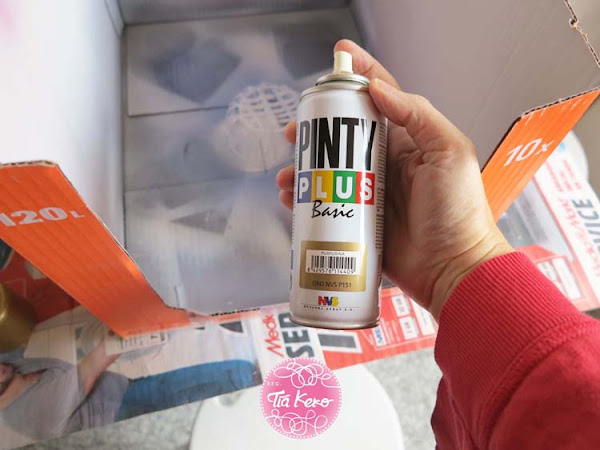 Cogemos pintura en spray dorada y pintamos el cuenco. Lo dejamos secar 24h hasta que la pintura este completamente seca.