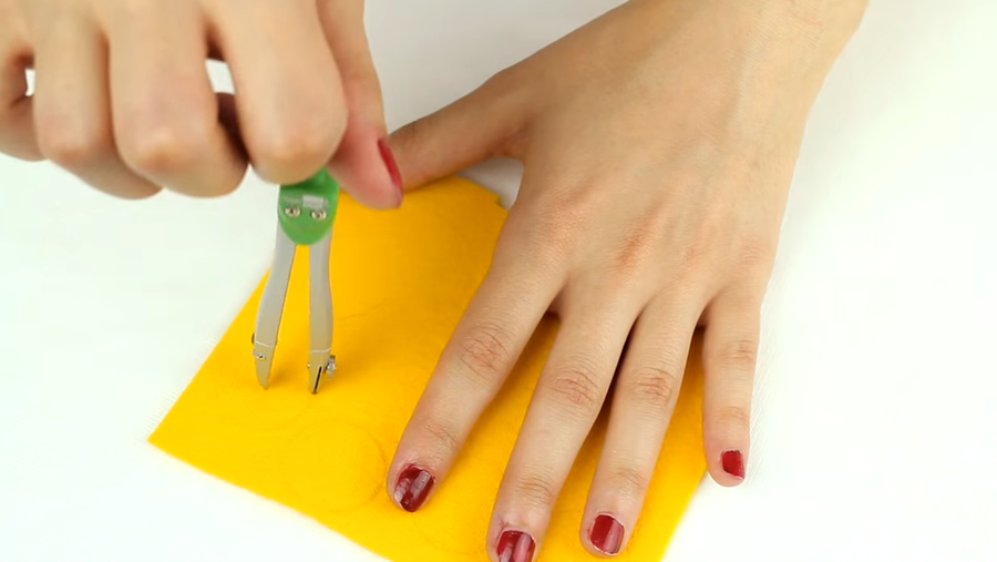 1º En el fieltro hacemos varios círculos con el compás y los recortamos.