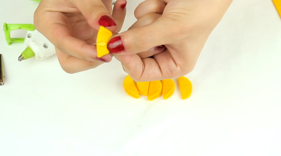 3º Pegamos las mitades de fieltro entre ellas, hasta conseguir una especie de flor.