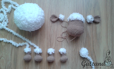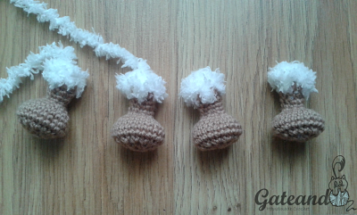 Cambiar a lana marrón (o del color que se quiera hacer la piel de la oveja) en mi caso como era lana más fina usé aguja de 2.5 mm.