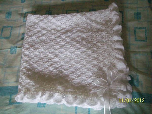 HOLAS AMIGAS, NO ME HE PERDIDO, ES QUE ME HE TOMADO UNAS VACACIONES Y CON LA FELIZ NOTICIA DE QUE EN JUNIO NACERA MI SEGUNDO NIETITO...ASI QUE COMO SE IMAGINARAN, SAQUE LAS AGUJITAS, REVOLVI MI CAJA DE LANAS Y EMPECE A TEJER, SUPERFELIZ...ESTA MANTILLITA SE LA HICE A UNA AMIGA Y UNA IGUALITA ES PARA NACHITO, QUE LA ESTRENE EL DIA QUE SALE DEL SANATORIO CON SUS PAPIS..LES DEJO PUNTO Y PUNTILLA POR ...