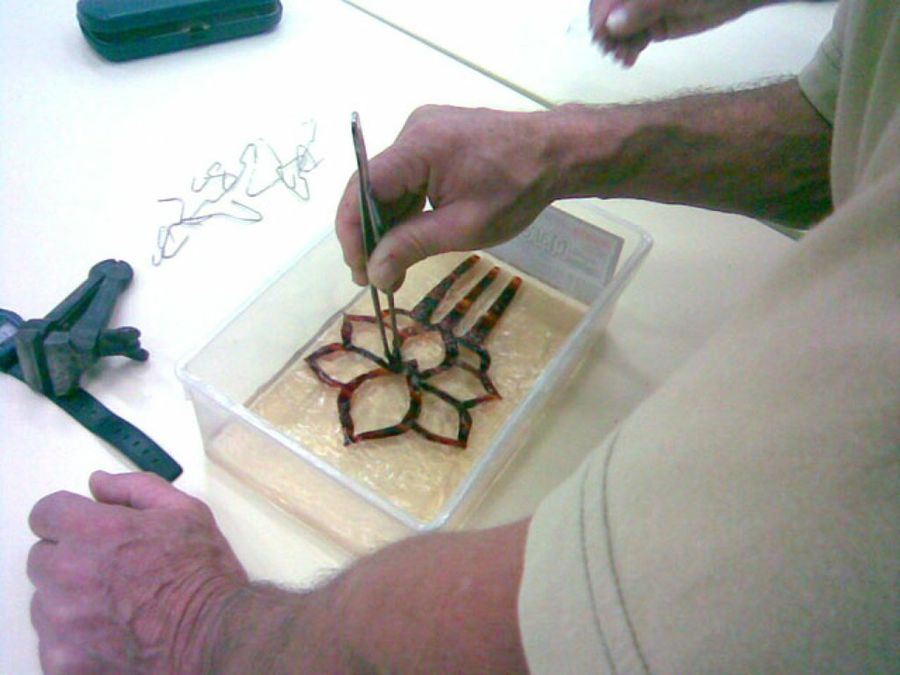 La introducimos en abundante acetona pura durante unos 30 segundos, procurando que el recipiente sea amplio para que la peineta no tome forma ni se choque con nada.