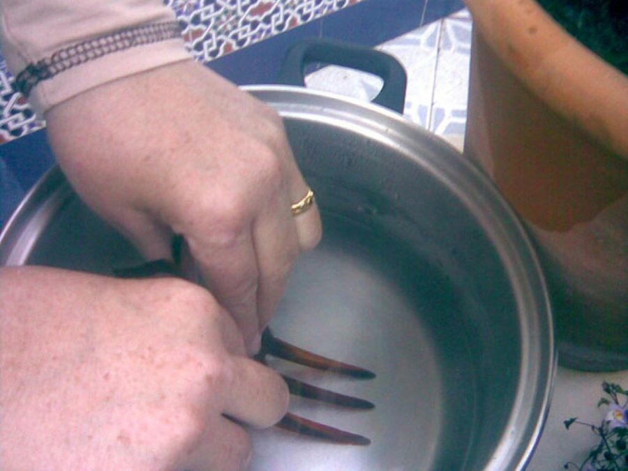 Una vez fuera del agua, mantenemos la forma con unas gomas elásticas hasta que se enfríe. Este es el resultado final.