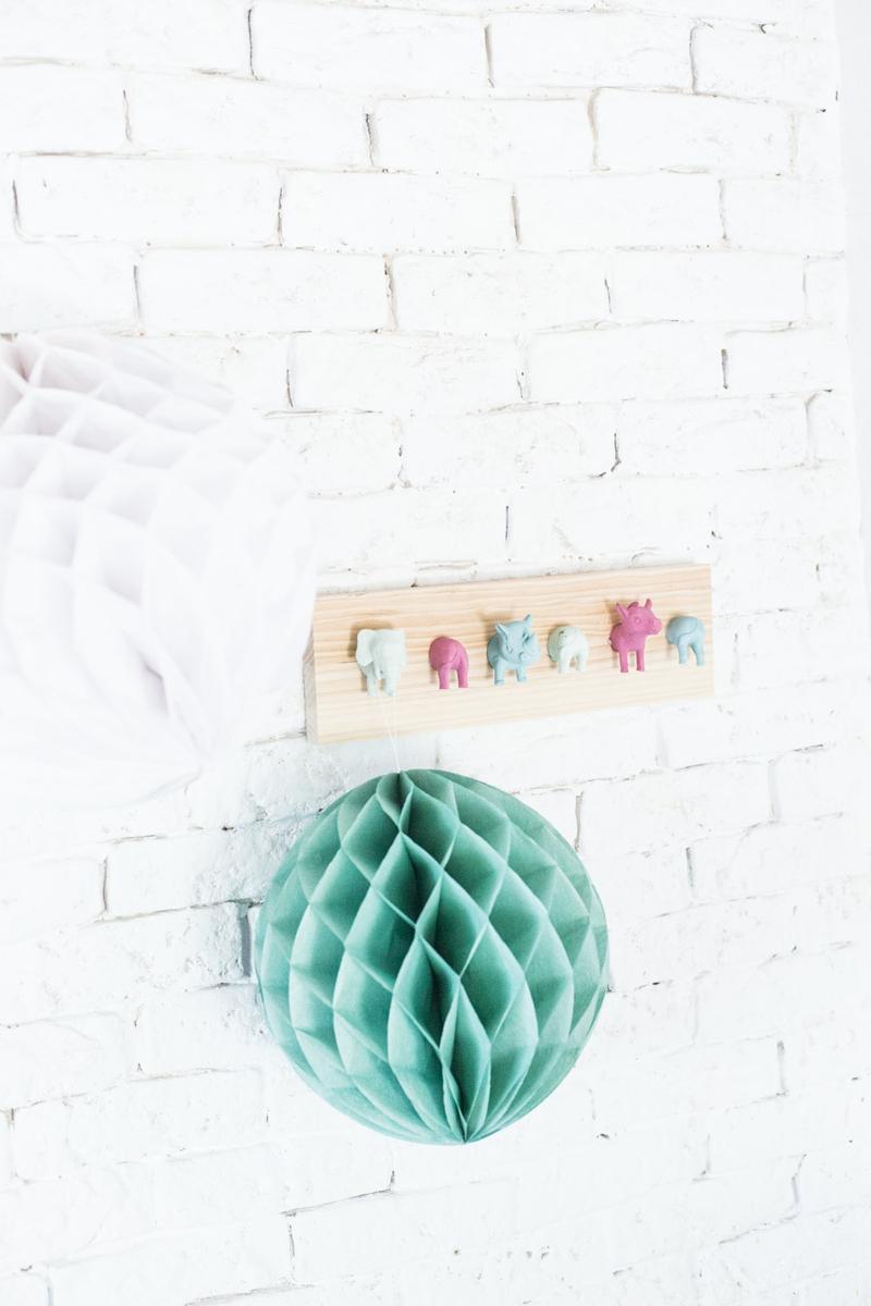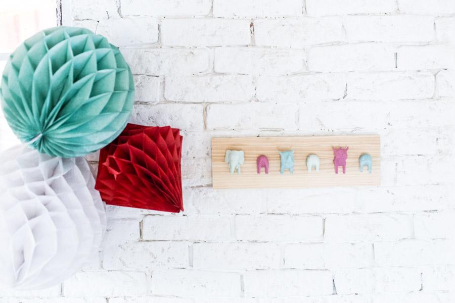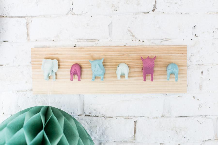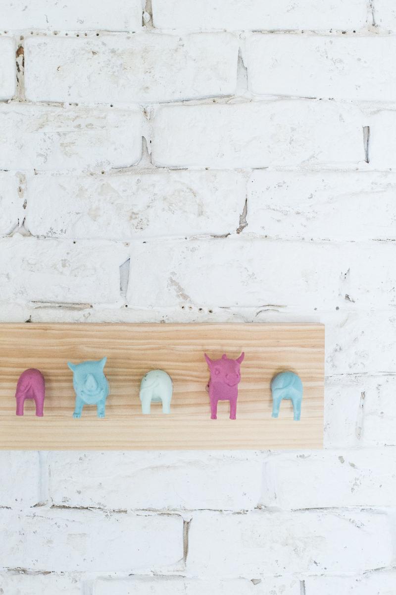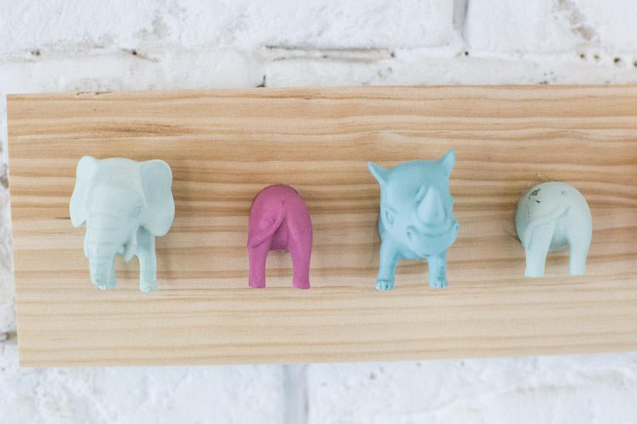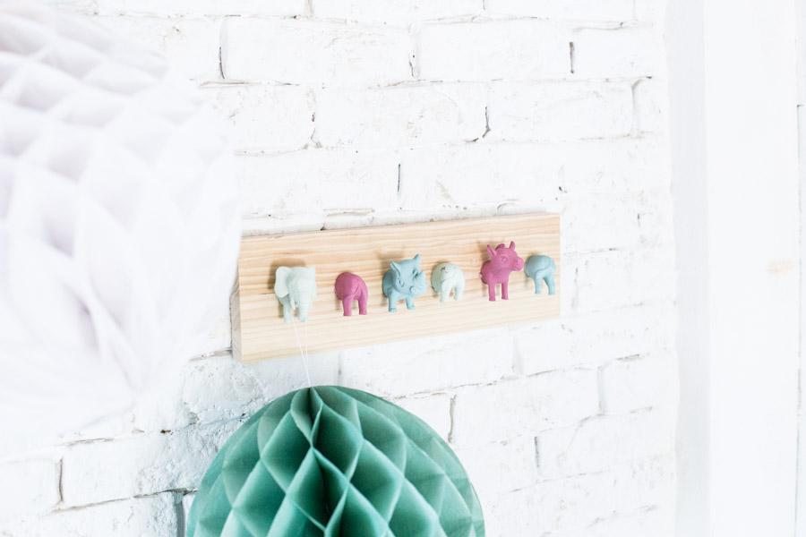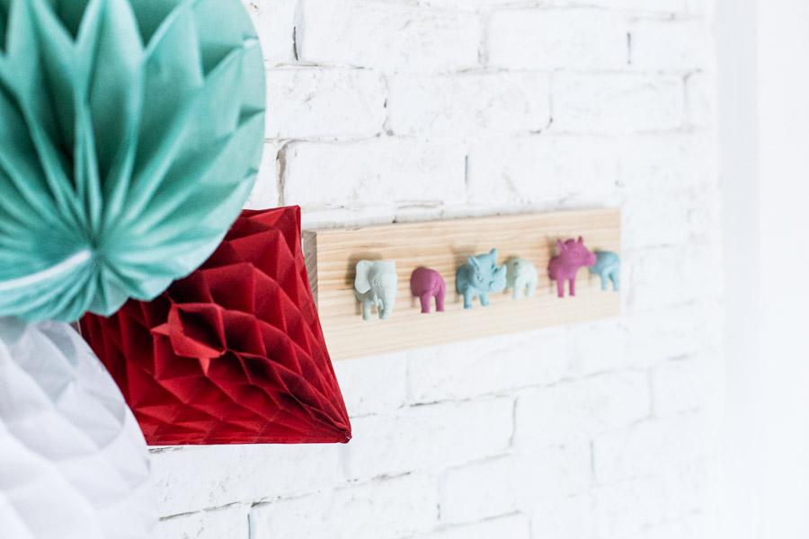 Ponemos unas alcayatas y ya tenemos listo este perchero divertido para la habitación, baño o entrada para dejar los abrigos y mochilas de los más pequeños.
