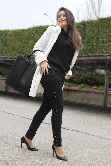 Hola!!!! Qué tal estáis???? Hoy os traigo un DIY muy muy fácil, a lo mejor os lo encontráis por ahí, pero que conste que yo no lo he copiado de ningún blog ni ninguna web!!!! La idea surgió ojeando una revista de moda, vi unos pantalones negros con tachuelas por todo el lateral del pantalón, y me pareció una idea fácil y muy vistosa para reciclar unos pantalones negros. Elegí pantalones negros porque tengo varios, son los que más me pongo y a veces me aburren y otras veces no puedo vivir sin ellos. Como es una prenda súper combinable y seguro que tenéis por el armario, aquí os dejo una forma sencilla de darles un aire distinto DENTRO VÍDEO TUTORIAL: