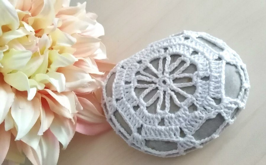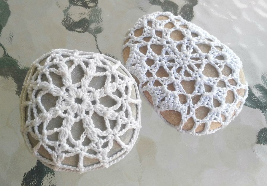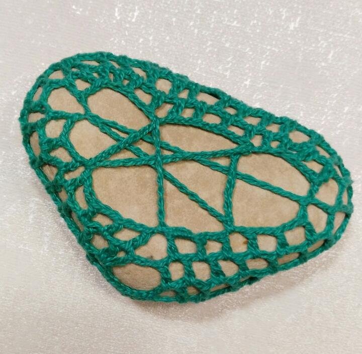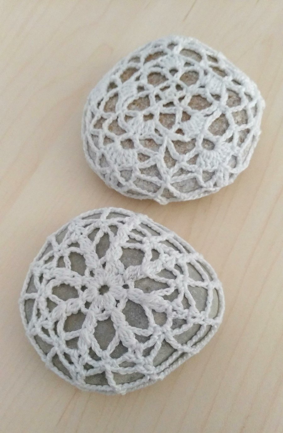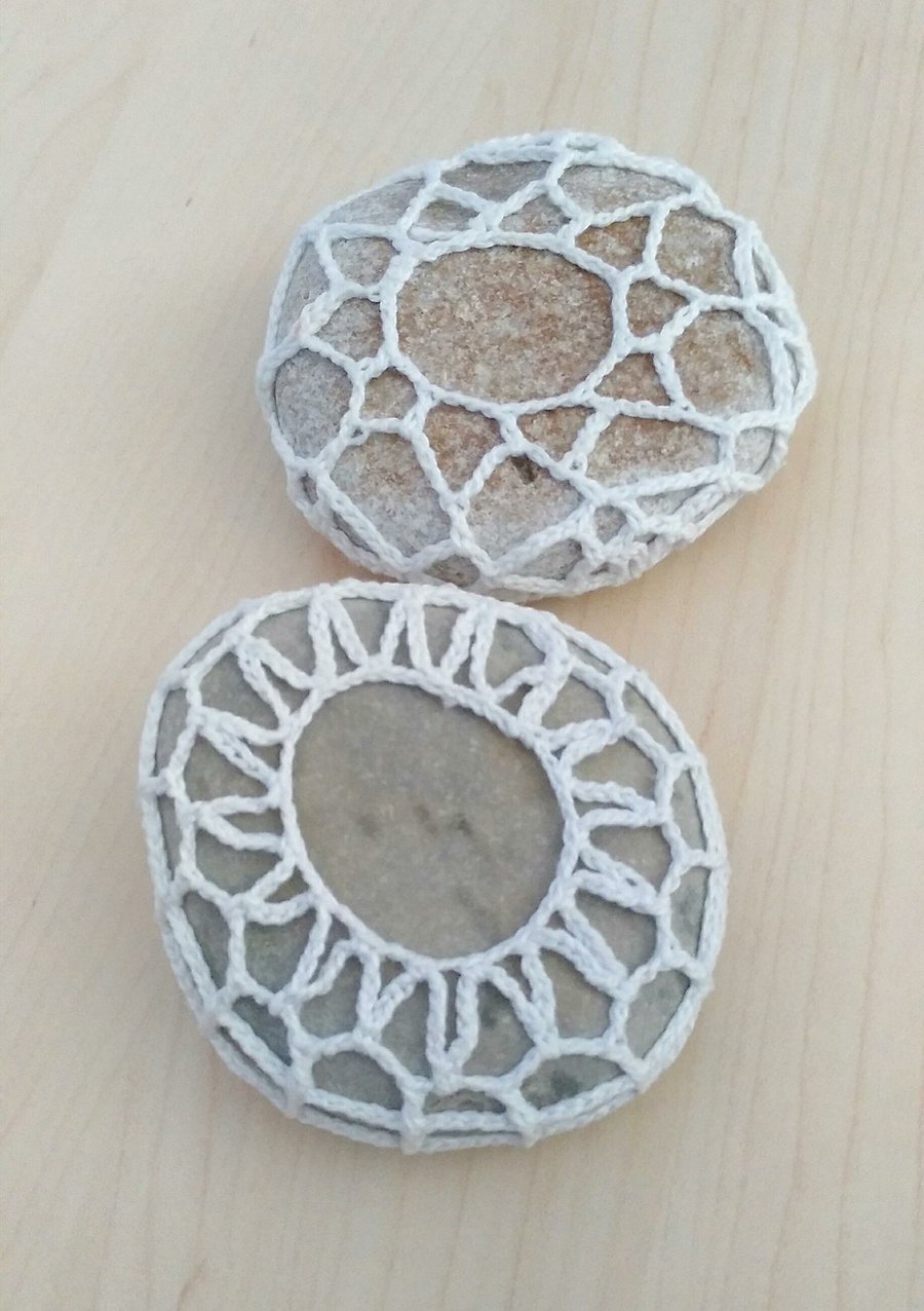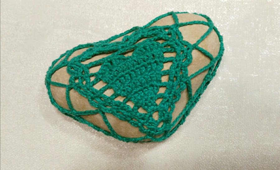 Piedras de diferentes tamaños. Y una vez ya en casa "hablo con ellas". Miro sus formas para inspirarme en el patrón más conveniente para forrarlas. A veces tienen formas especiales como esta en forma de corazón que fue de las primeras que realicé.