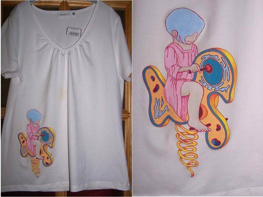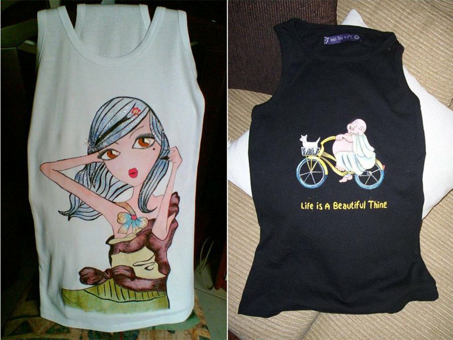 La camiseta es el bastidor de la pintura en tela por excelencia. En verano llevamos ropa ligera y desenfadada, algo que invita a decorar las prendas con los motivos más sugerentes. En la época estival nos sentimos informales y juveniles, y nos atrevemos a lucir sobre el cuerpo diseños y colores que en invierno parecen fuera de lugar.