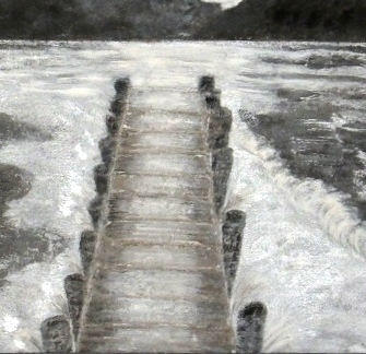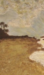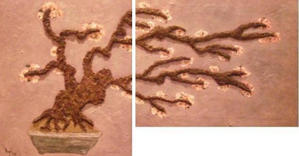 Ya había pintado anteriormente con acrílicos, pero en este caso me apetecía añadir un componente más que le diera realce a la propia pintura: Elegí la arena de playa mezclada con pintura y cola blanca.