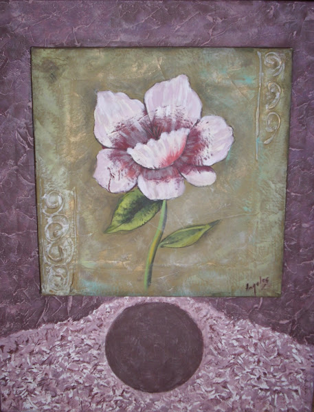 De pequeño formato, el cuadro de flores que viene a continuación, es de mis primeras incursiones en este mundo de las texturas, hace más de 10 años. Montado sencillamente después en un marco de madera.