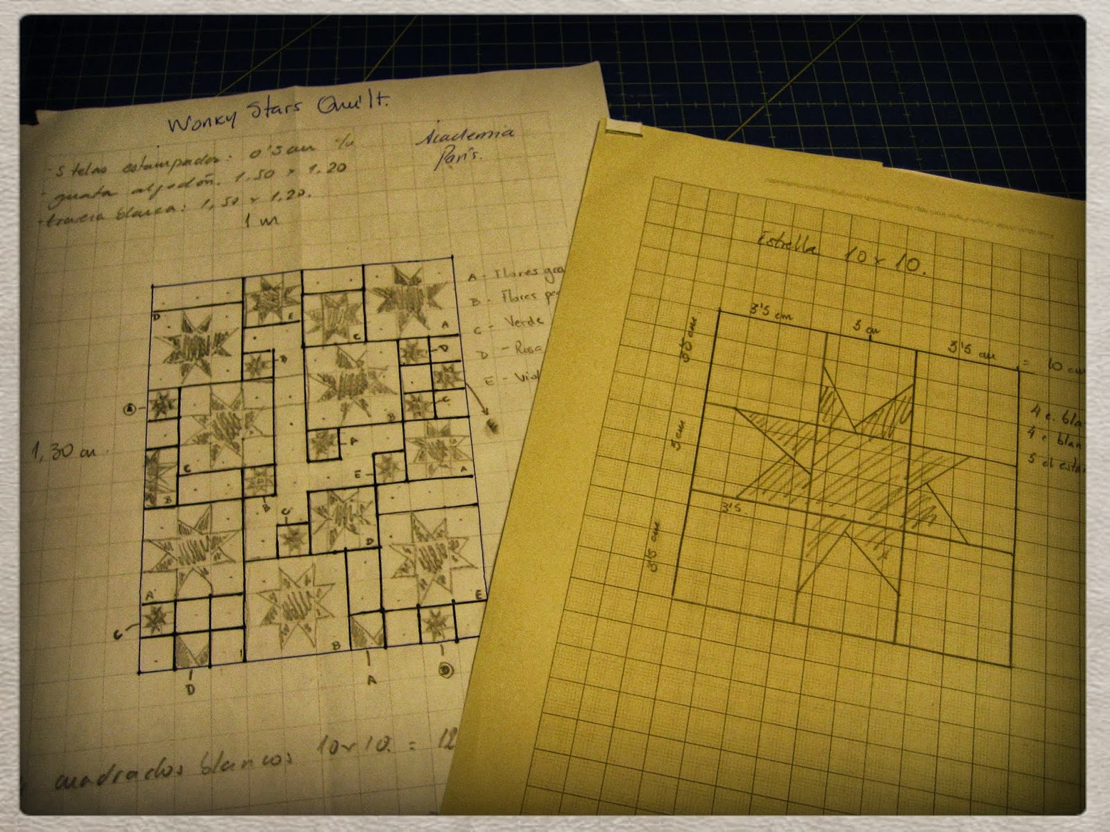 Diseño final: dibujémosla tal cual va a quedar. Si tu colcha va a tener muchos detalles y técnicas diferentes, dibuja un boceto para tener claro qué va en cada una, y luego dibujas los detalles (los patrones, vamos) aparte. Otro ejemplo: