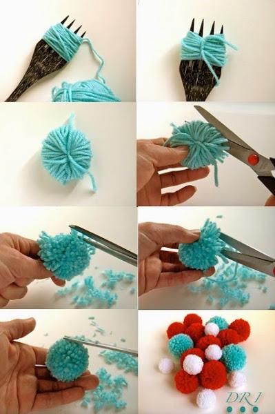 Sacamos el pompón casi armado del tenedor y empezamos a abrir los costados con una tijera.