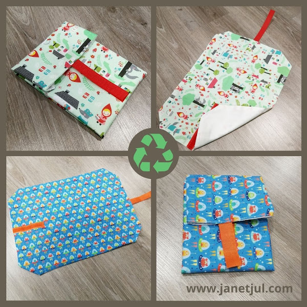 La funda para los bocadillos que te muestro es muy fácil de hacer, la idea es que dejes que tus pequeños la hagan y así tomen conciencia ecológica, me parece que es una buena forma de empezar.