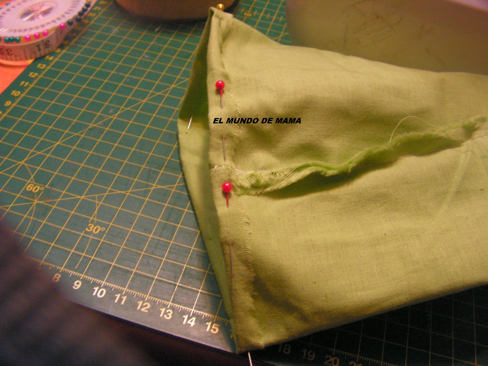 Marcamos 1 cm en el borde giramos y sujetamos con alfileres
