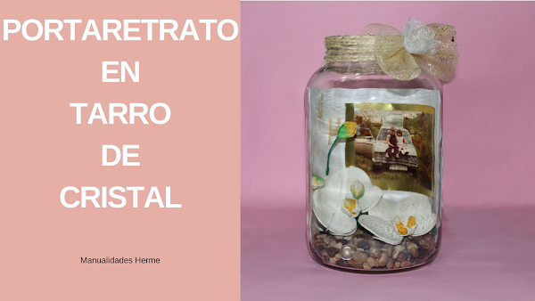 Hoy os muestro una manera diferente, de hacer un portaretrato con un tarro grande de cristal. Es muy fácil y rápido de hacer.