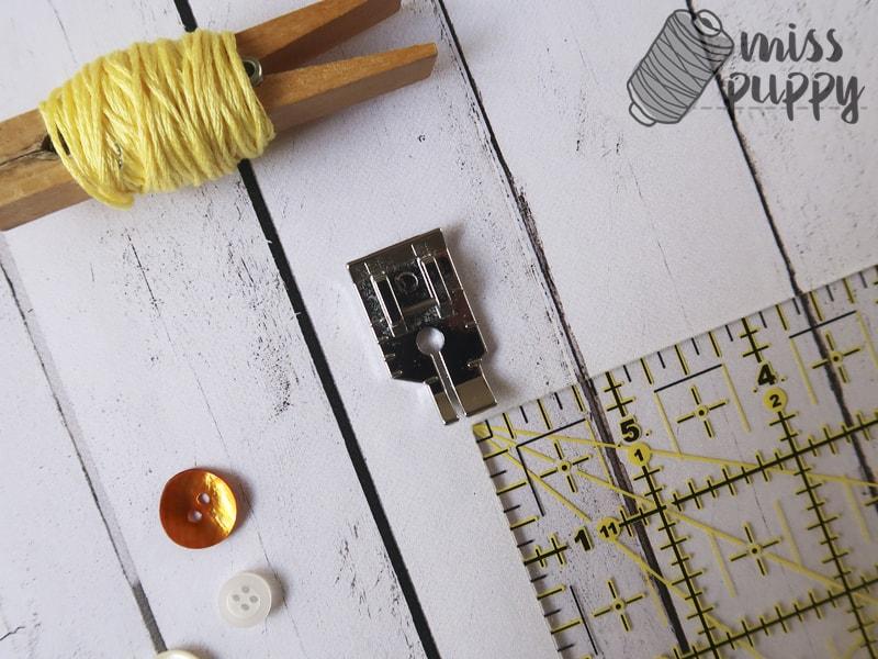 El prensatelas de 1/4 de pulgada es un prensatelas básico que, desde la aguja hasta el margen derecho, mide 1/4 pulgada (obvio, ¿no?), así que alineando la tela al prensatelas consigues un margen de costura perfecto.