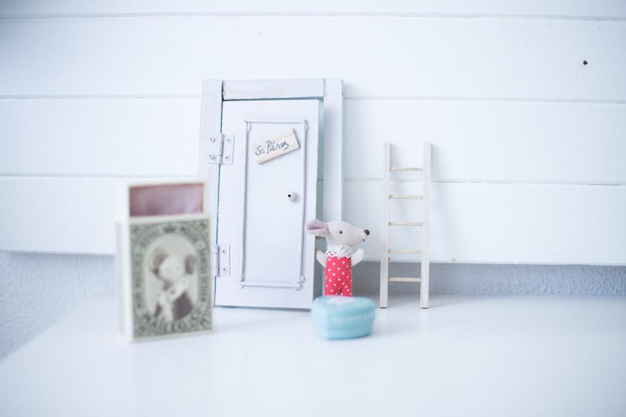 Pintamos nuestra puerta y le añadimos un cártel con el nombre del Sr.Pérez. Y ya tenemos una puerta para nuestros peques muy sencilla que hará las delicias de los más pequeños, con estos pequeños detalles, que conlleva la caída de un diente.