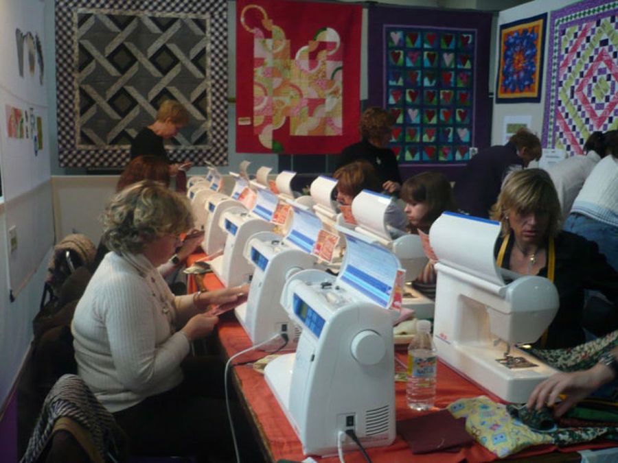 La zona de costura, con una gran colección de máquinas para que las aficionadas tuvieran oportunidad de aprender diversas técnicas.