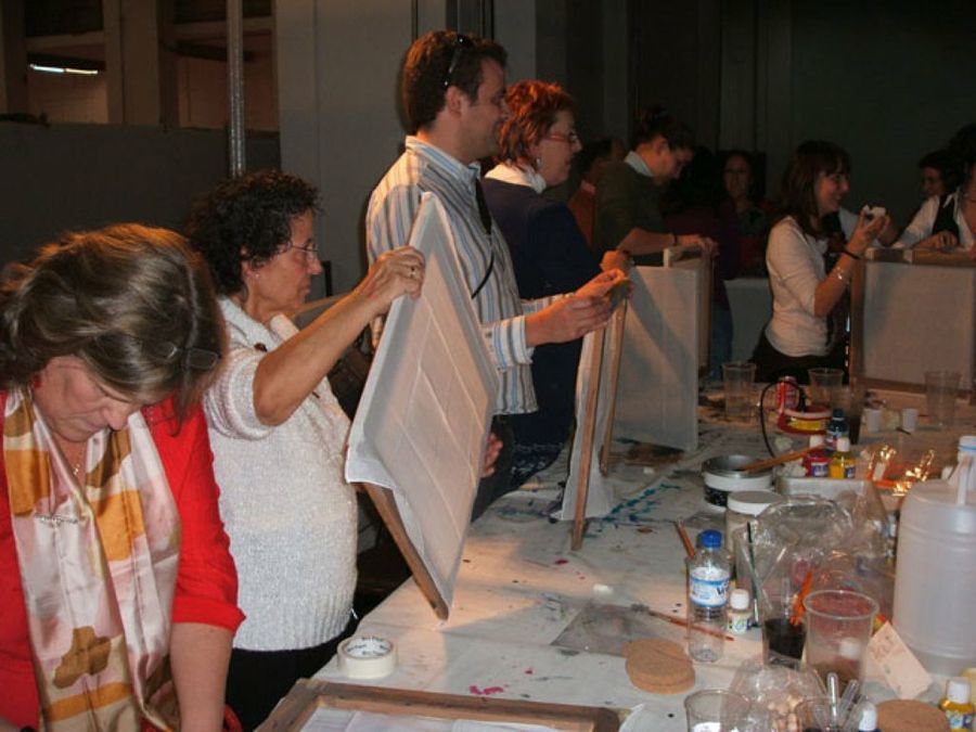 En el taller de pintura sobre tela, la pandilla dejó bien alto el pabellón de Manualidadyhogar.com.