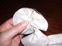 Esta se forma con una espiral de muchas vueltas y con la tela muy fruncida.