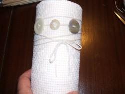 El adorno está hecho con un cordón blanco por el que he pasado tres botones de nacar.