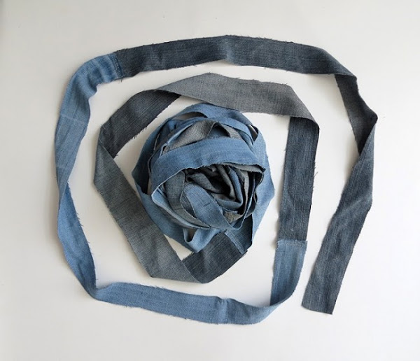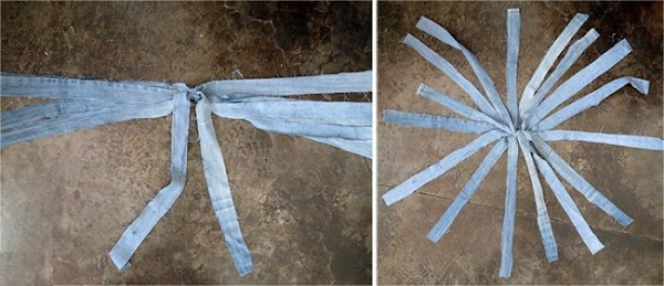 Recorta varias tiras de jeans y cose los extremos, formando tiras largas.
