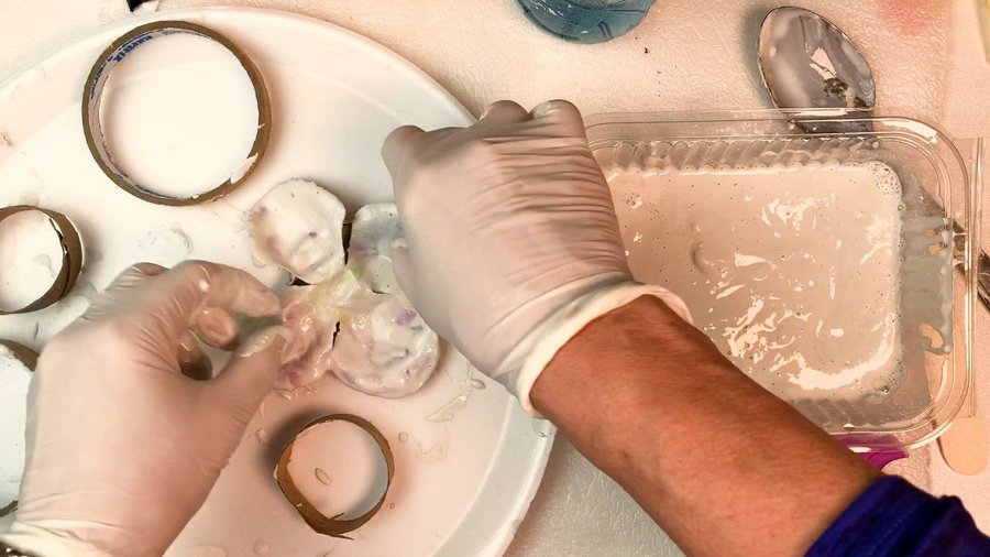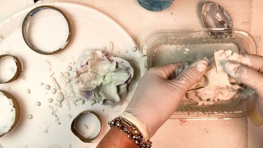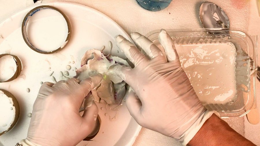 Si ustedes quieren utilizar yeso en lugar de pastilla les aconsejo que agreguen también la cola vinílica para atrasar el endurecimiento y poder trabajar con más tiempo.