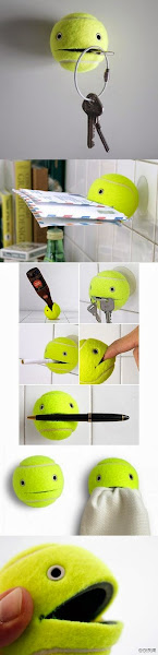 Me encontré con una alegre y buena solución para reciclar las pelotas de tenis, transformandolas en comodos percheros. Es muy sencillo por lo que necesita explicación !
