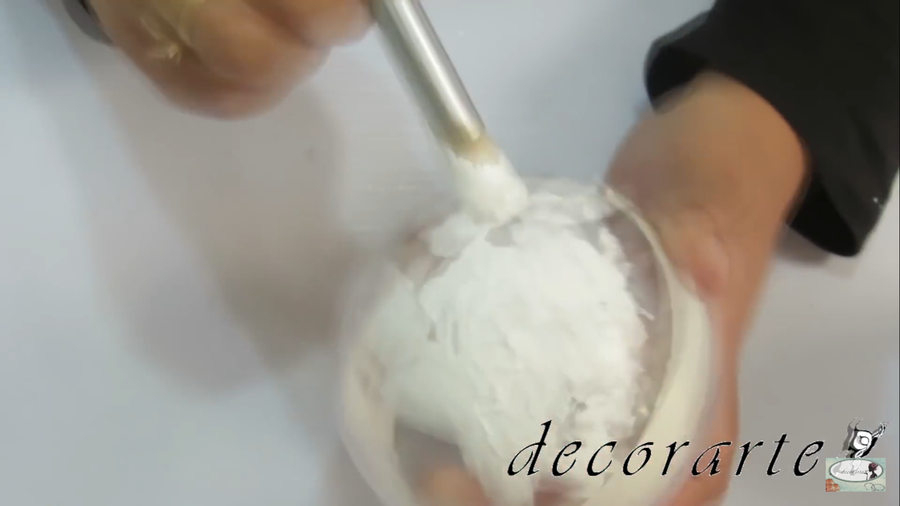 luego aplicaremos gesso a toques, en la parte inferior de la bola ( como se muestra en el vídeo ) Le aplicaremos 2 capas o hasta que quedemos conformes debemos dejar secar al aire