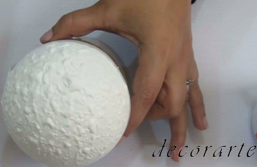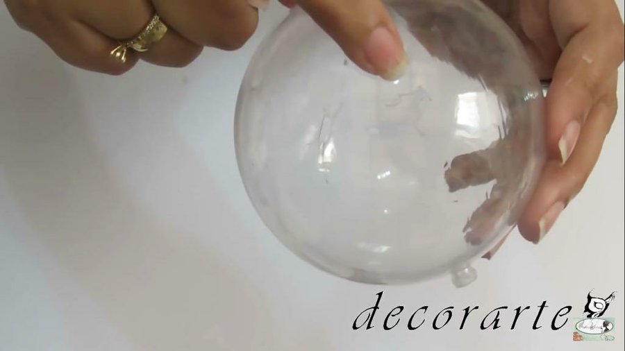 Buscaremos cual es la mitad,de la esfera, y le pondremos cinta de papel.