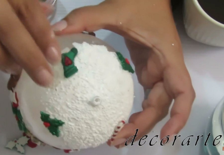 a este también le aplicaremos bolitas de telgopor o icopor, y escarcha tornasol
