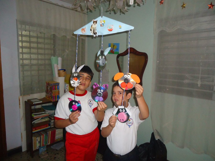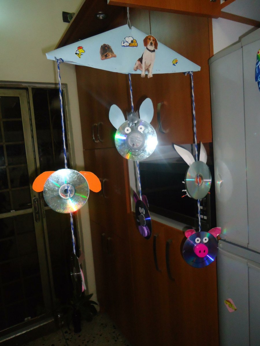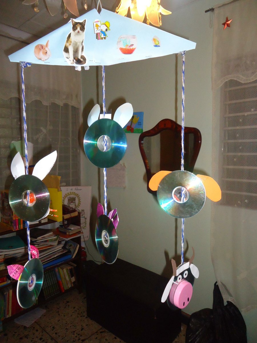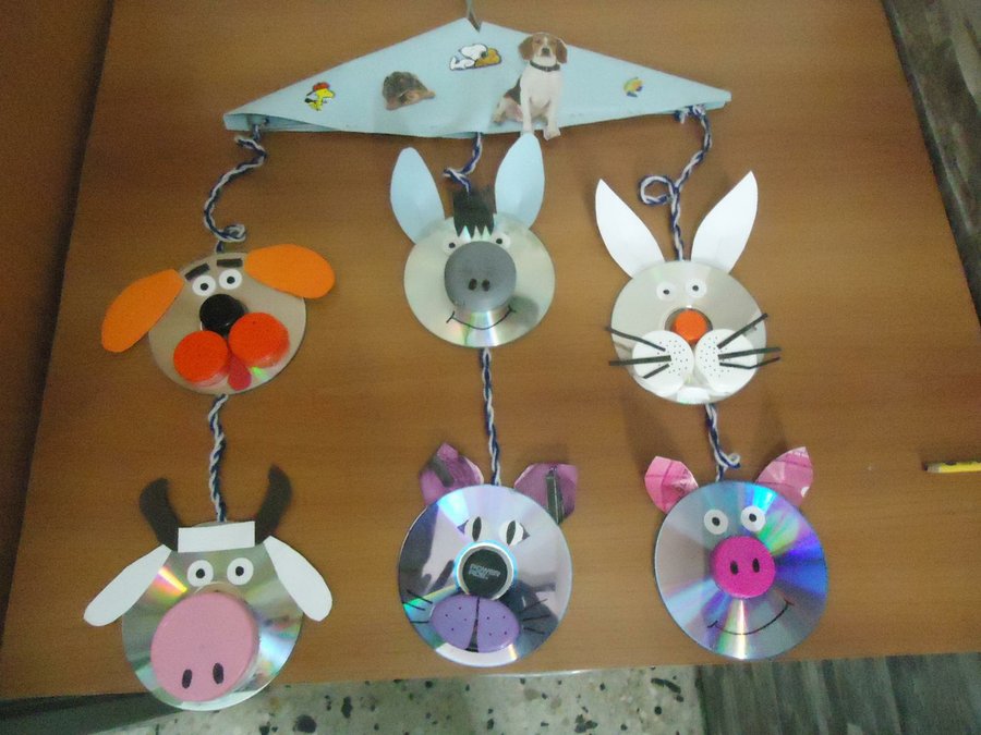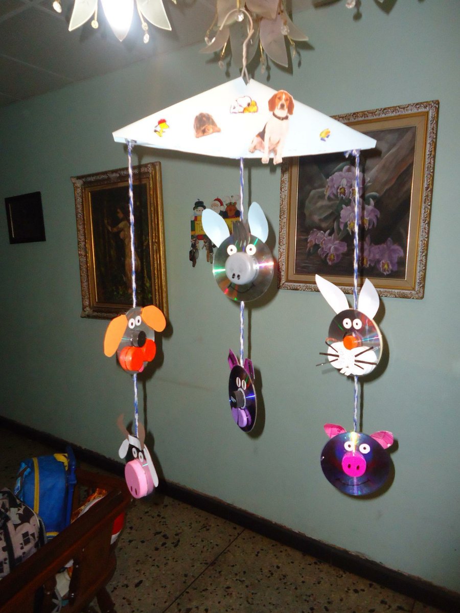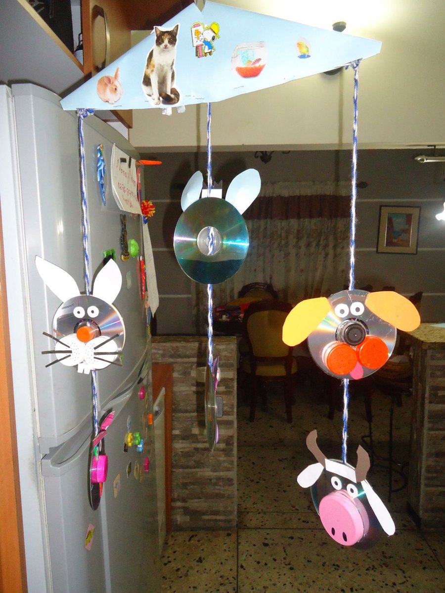 Los animales-Cd se pegaron a diferente altura para lograr más vistosidad en el móvil.