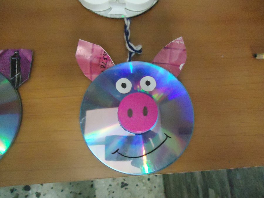 Una vez elaboradas todas las caras, se pegó otro CD, por la parte de atrás, para ocultar la unión de la trenza hecha para pegar los CD a diferente altura.