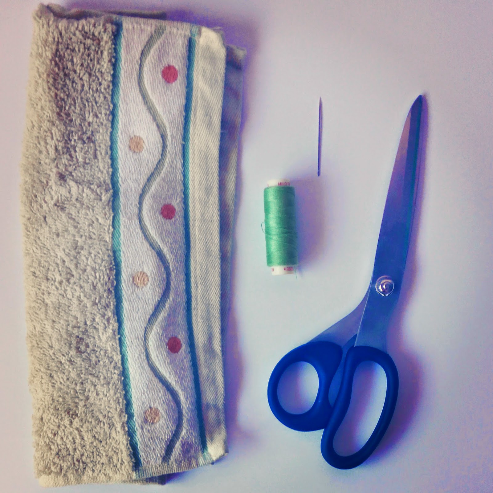 Con una toalla, aguja e hilo podemos crear una manta-neceser para llevar productos cuando viajemos.