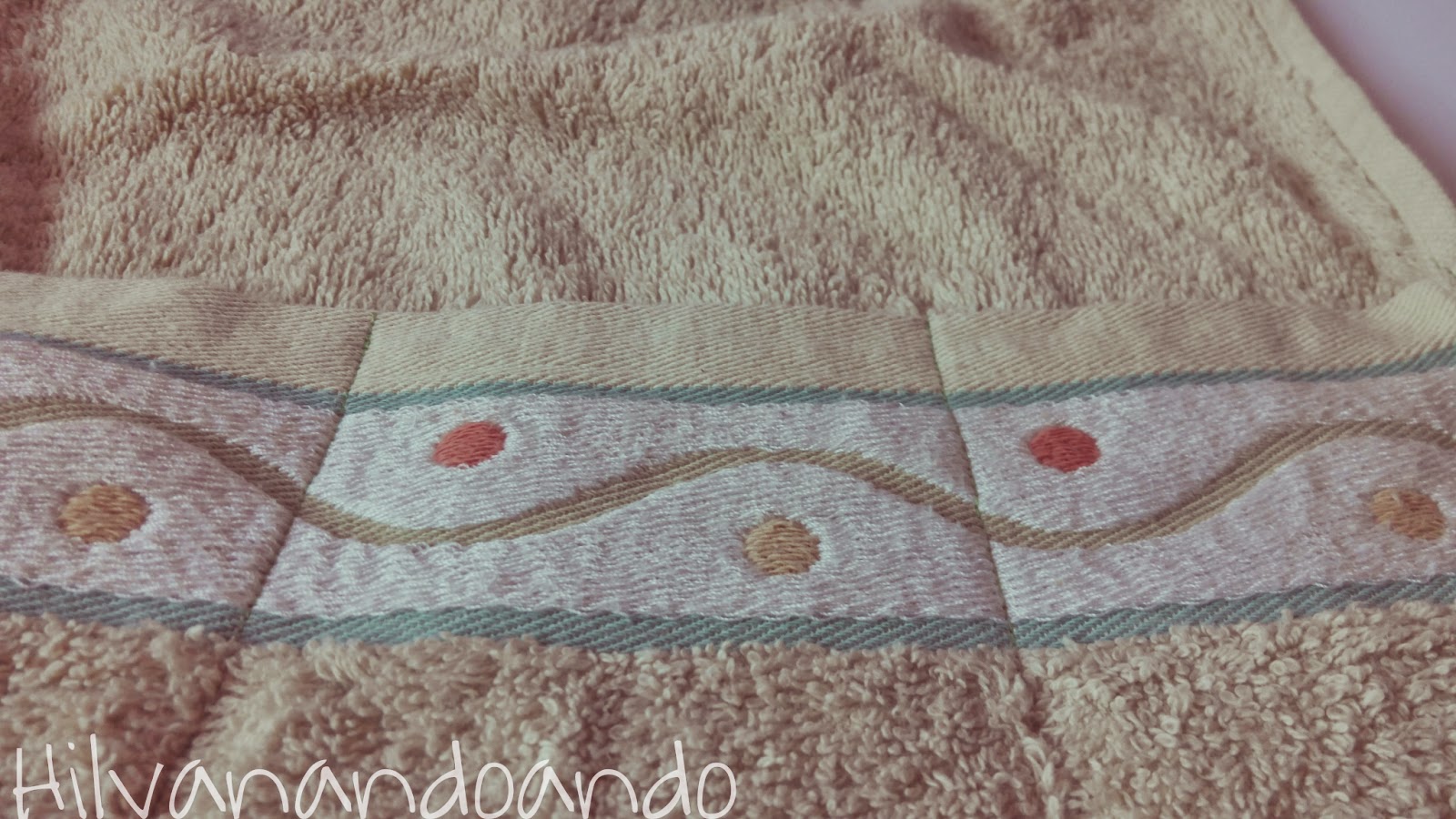Y bien a mano o a máquina tienes que coser los dos laterales de la toalla y coser desde la doblez hasta donde termina la unión de la toalla con el fin de crear compartimentos o bolsillos.