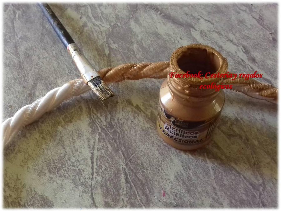 Como decoración extra utilizamos un cordón o tira de pasamanería, y si no consigues del color que deseas, bien puedes pintar...