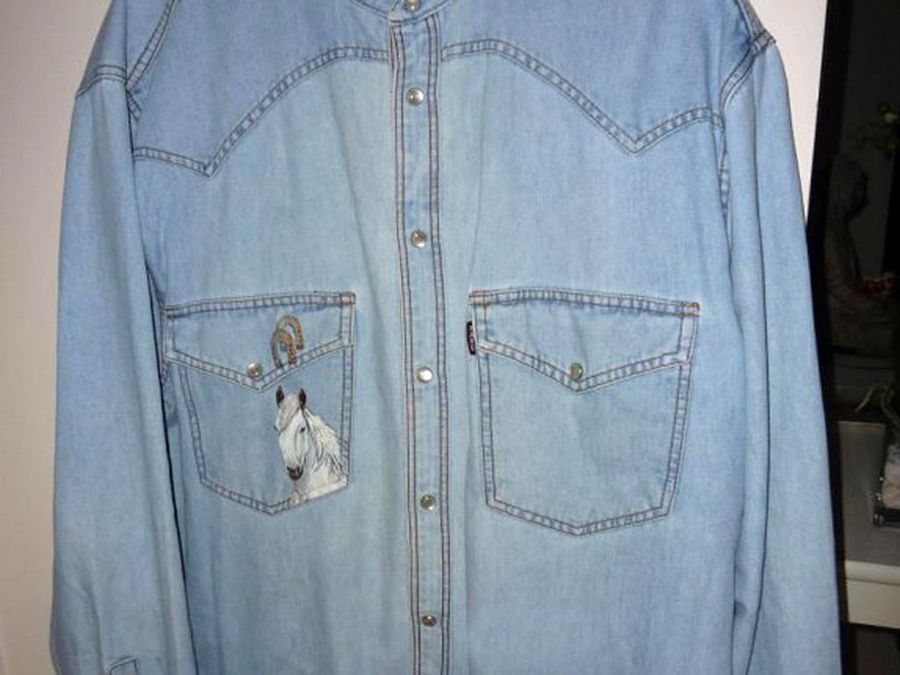 Muchos papás guardan como oro en paño sus antiguas camisas vaqueras. Ahora que llega la primavera, un decorativo adorno pintado como el de Zire las pondrá de nuevo en órbita.