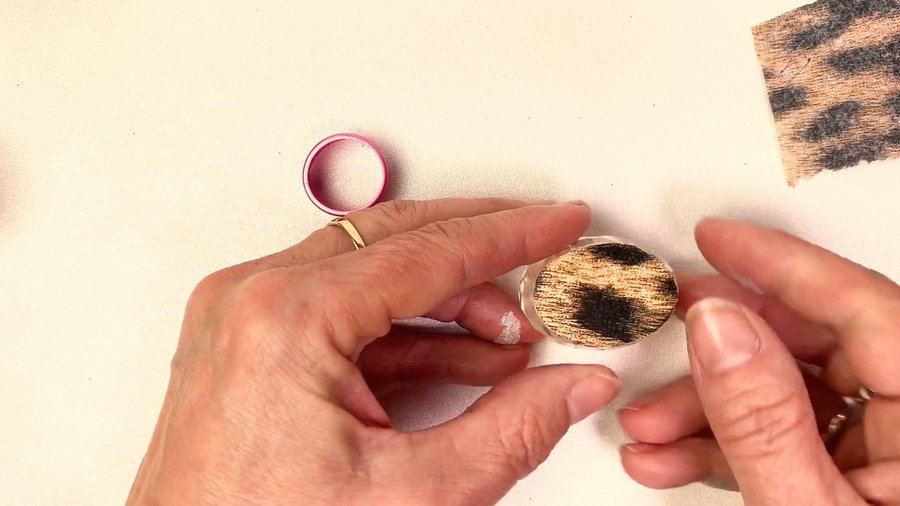 Recorto y coloco otro trozo de servilleta en forma de óvalo de la tapa pegado con cola vinílica.