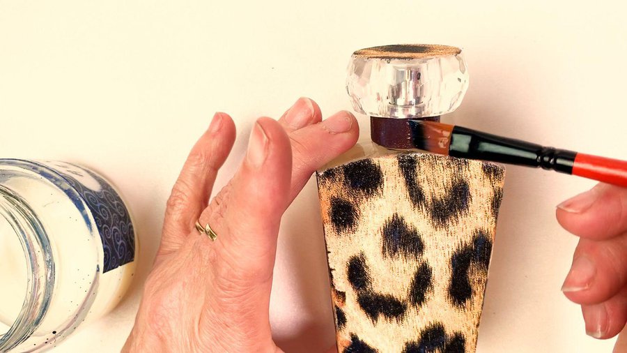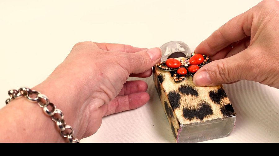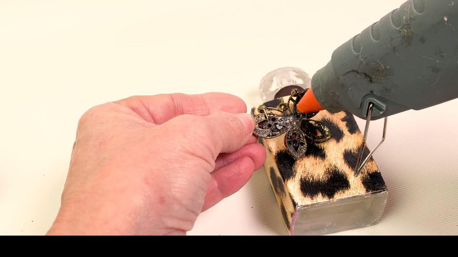 En el centro de éste le pego una figura de acrílico al tono y otra igual más grande sobre la tapa.