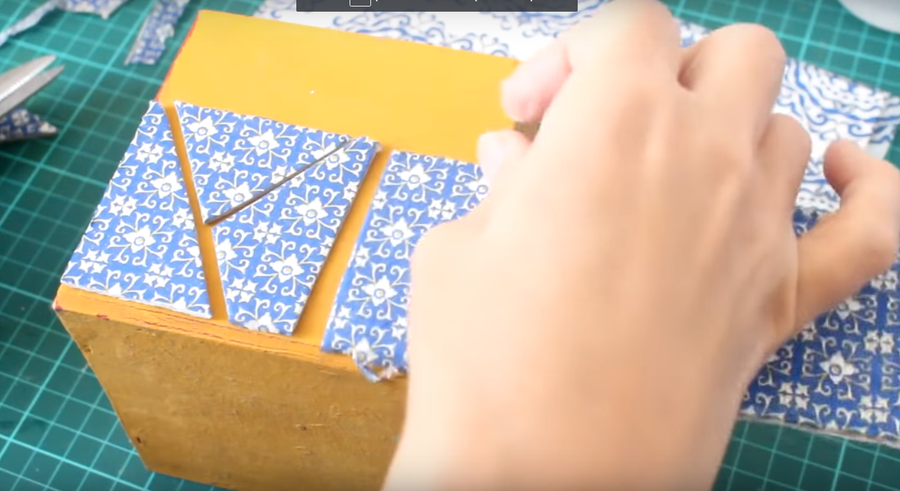 Para no complicarnos demasiado vamos a ir haciendo los recortes e ir pegándolos con silicona sobre la superficie del objeto.