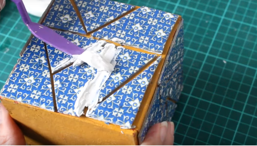 Cuando el pegamento se haya secado tenemos que barnizar para impermeabilizar y dar brillo. Lo mejor es dar varias capas finas dejando secar entre capa y capa.
